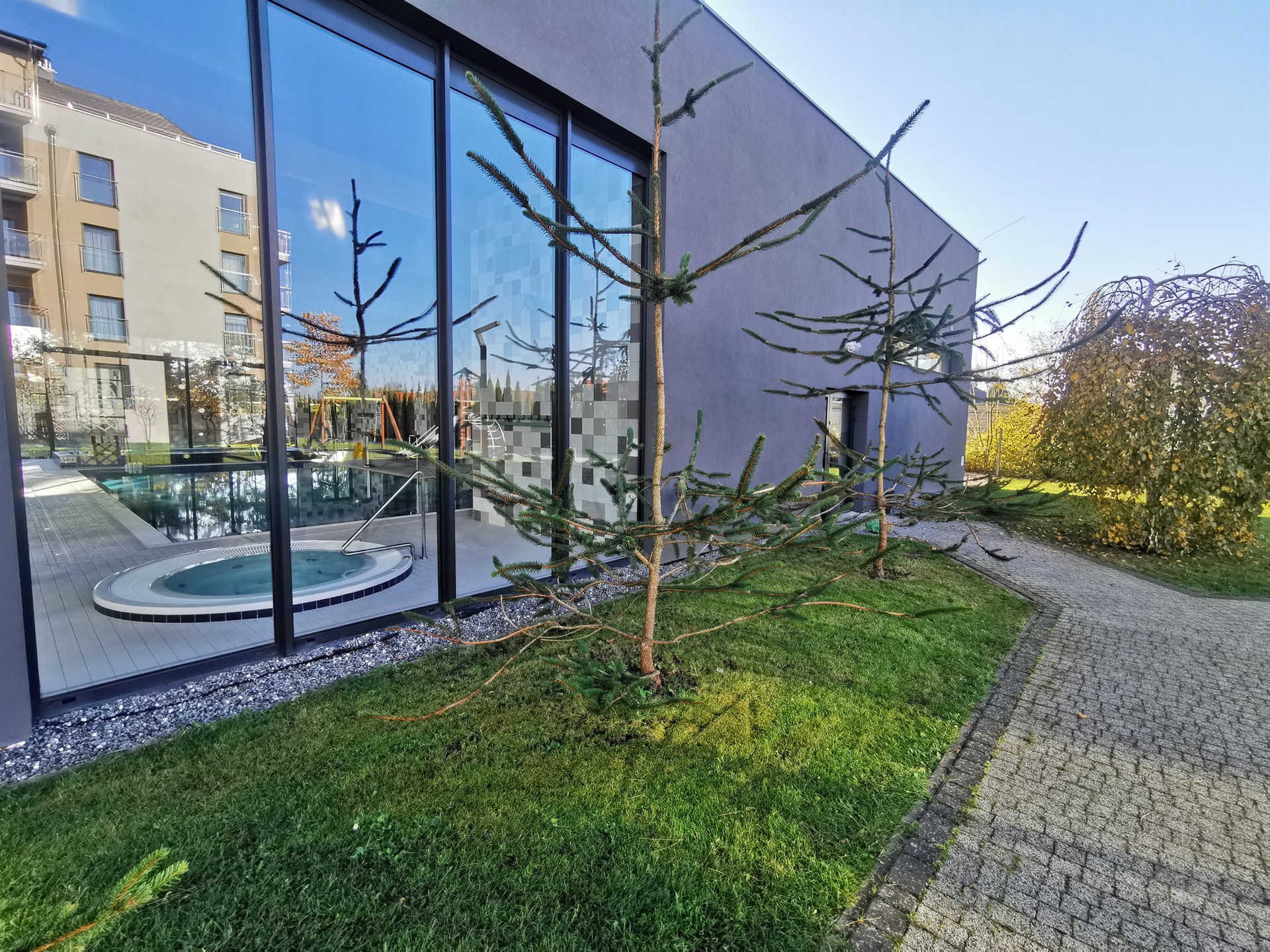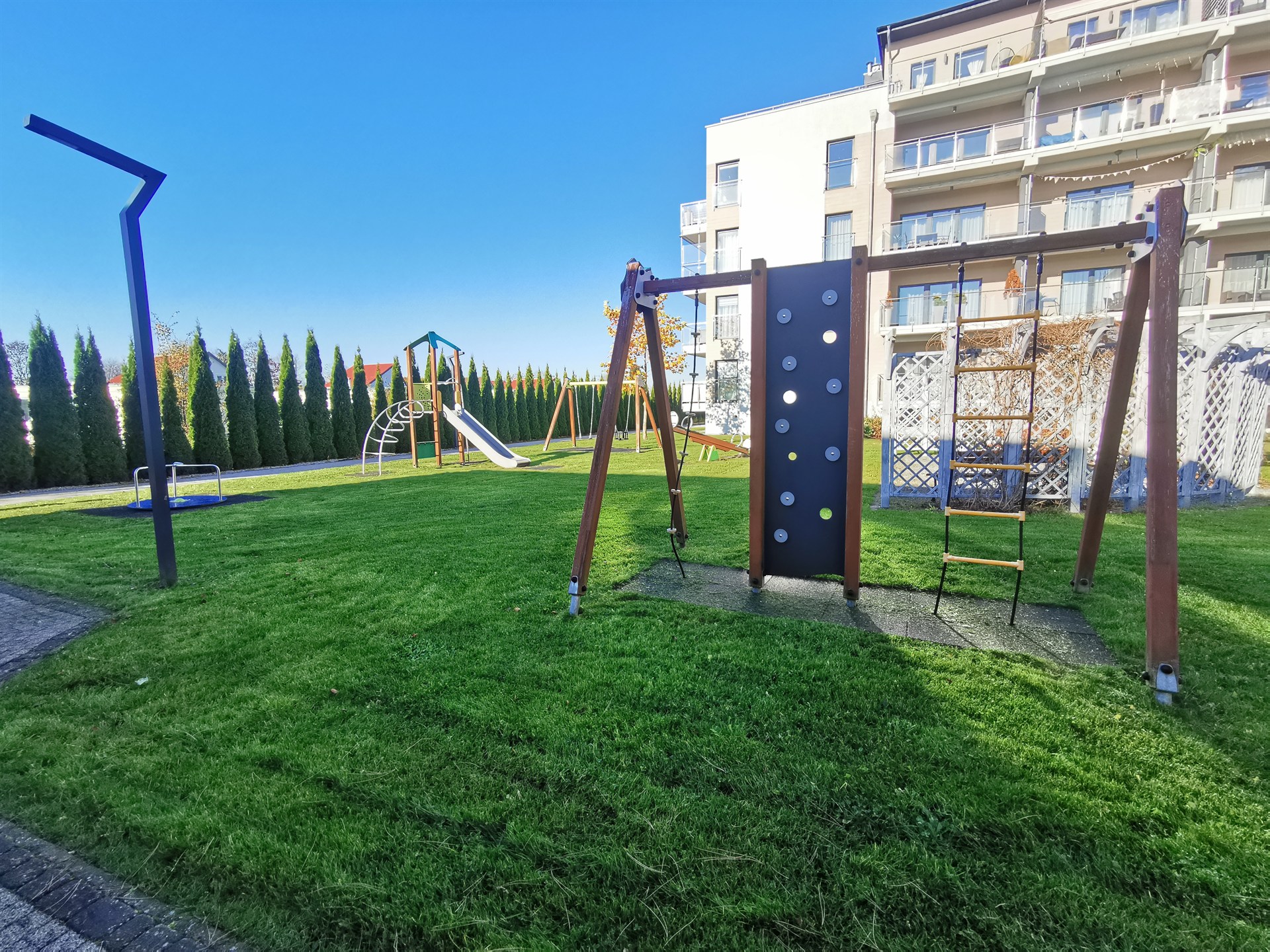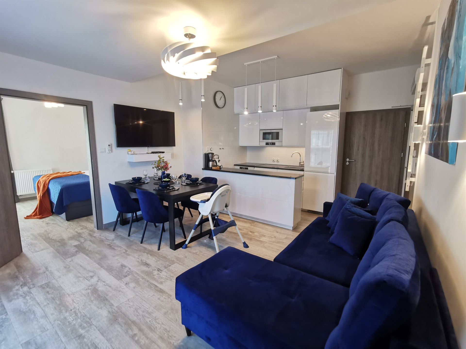 Goście mogą korzystać z basenu infinity oraz strefy Spa sauna, jacuzzi, hydromasaży, strefy wypoczynkowej z mini grotą solną, które zapewniają relaks i chwile odprężenia. Na terenie osiedla salka i plac zabaw dla dzieci. Dodatkowe udogodnienia obejmują klimatyzację, ekspres do kawy, telewizor z płaskim ekranem, SAT DE i EN i bezpłatne Wi-Fi. Balkon z zestawem wypoczynkowym stanowi doskonałe miejsce na poranną kawę lub wieczorny odpoczynek.