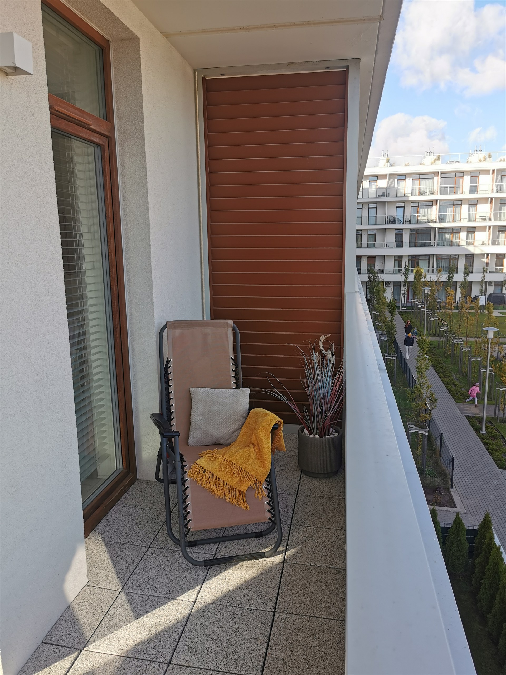 Prawdziwym atutem jest przestronny, narożny taras z widokiem na wewnętrzny dziedziniec – idealny do celebrowania poranków i spokojnych wieczorów.